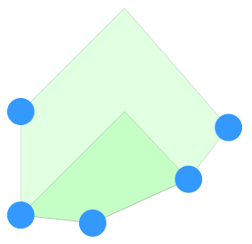 The convex hull of more than two features is represented by a polygon feature.