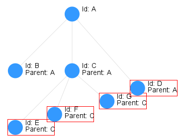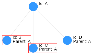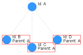 In the image above the two siblings B and C overlap which will result in both them and their sibling D being hidden and replaced by the parent feature A. | |
