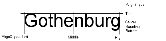 | Right | 2 | Indicates that the text/symbol should be right aligned, i.e. its right edge should be positioned at the insertion point. |