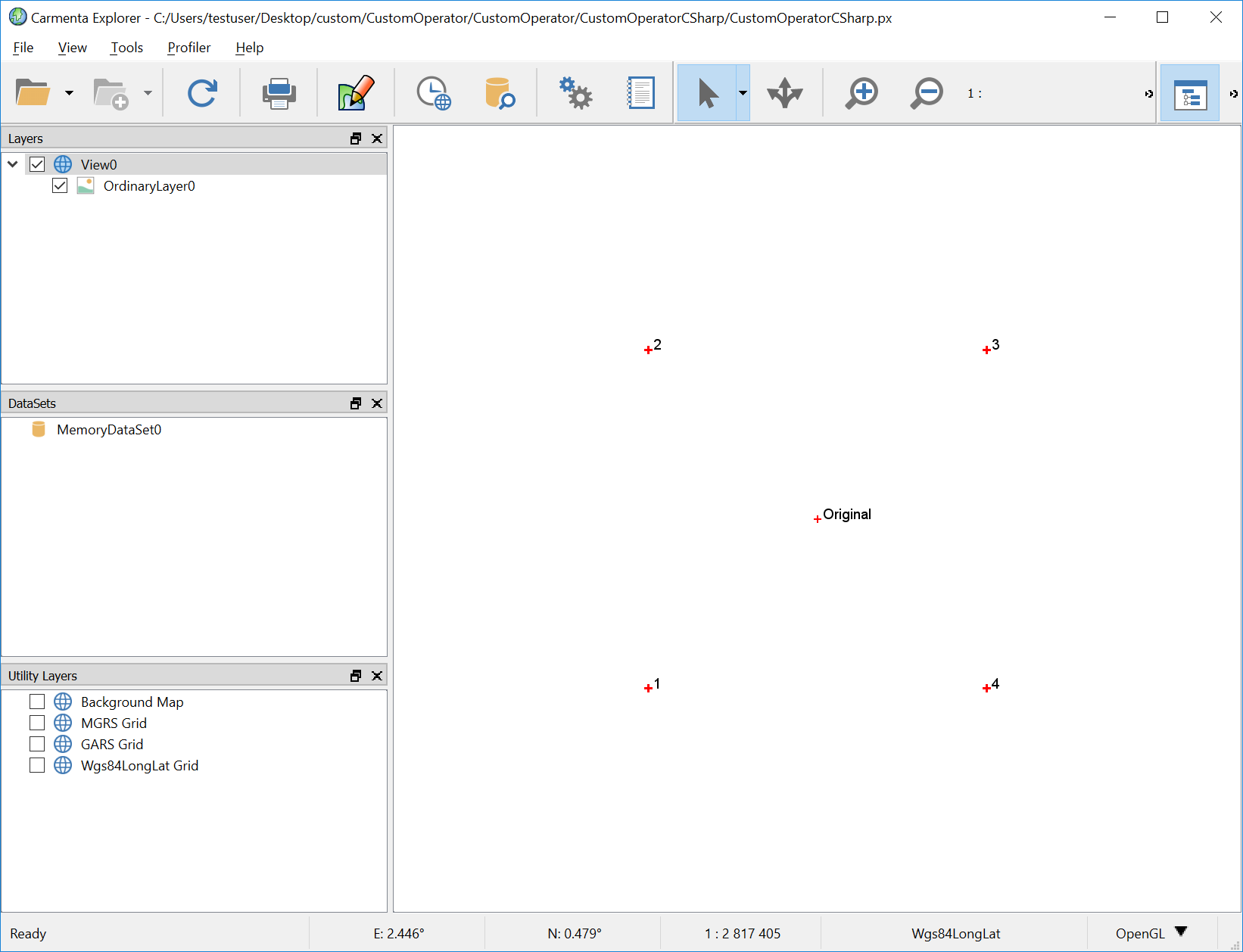 Simple custom operator that demonstrates how to use the CustomOperatorAdapter class to implement a custom operator that creates four copies of each feature, offset around the original, that is processed.