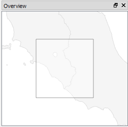 This window shows the view assigned as Overview in the layer tree. If no overview has been set, a default overview using the background map and Wgs84LongLat grid from the Utility Layers is created. The Crs of the default overview is Crs.Wgs84MercatorWeb.