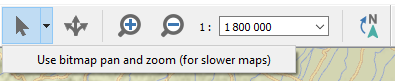 The standard tool is used for most operations, e.g. panning, zooming and selecting. See also the StandardTool. If you press and hold the StandardTool button, a menu will drop down, allowing you to enable bitmap pan and zoom for slower maps. More tool options can be modified in Options dialog on the Tools page.