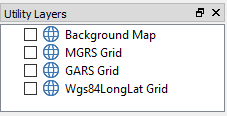 When looking at data in Carmenta Explorer these utility layers can help you see where the data is located. Note that they will only be visible in views that have a georeferenced Crs. When you close Carmenta Explorer, the enabled state of these layers will be saved.