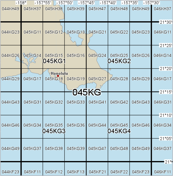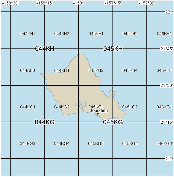 The GARS grid is based on a graticule (LongLat grid). Three sizes of LongLat squares have alphanumeric names: