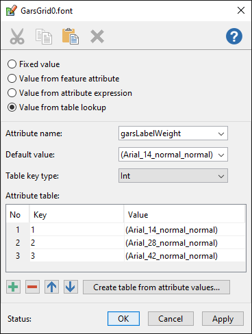 The default entry is necessary because the longitude and latitude labels also need a font, but they are attached to line features that lack the garsLabelWeight attribute.