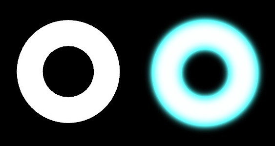 As effects are performed after everything under a layer has been rendered. Transparency of pixels and the value of Threshold will be used to compute how strong the glow is per pixel. Multiple overlapping transparent features can be used to produce a stronger glow where multiple features overlap.