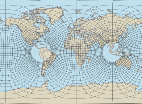 With the default Bounds, the grid will usually be constrained only by the bounding rectangle of the Coordinate Reference System of the grid; that is, the bounding rectangle of the world map according to this CRS. Some types of map projections will cause tighter default constraints, though: