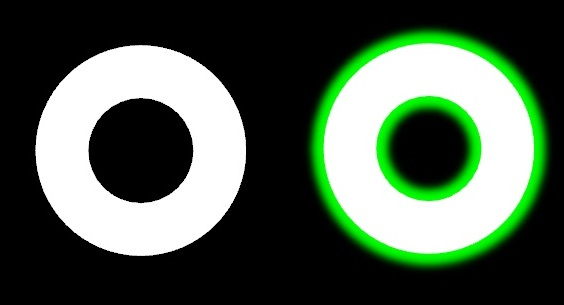 This effect will apply a halo around or under rendered objects depending on ApplicationMode. The geometry that the halo is created from is extended by one radius before it is blurred and recolored into Color to have close to full opacity near the geometry, instead of having full opacity one radius in from the edge of the geometry like a blur would.