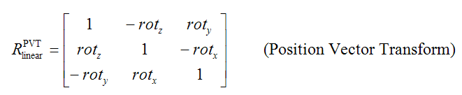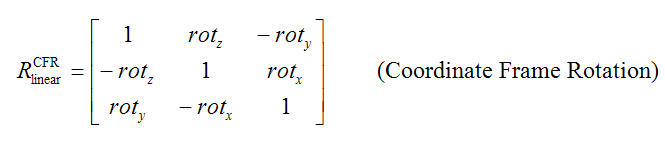 According to some sources, the difference between Helmert and Burša-Wolf is not whether the rotation matrix is linearized (as described above), but is instead the sign convention for the rotation angles. But we think this is a misunderstanding, used only in a few texts.
