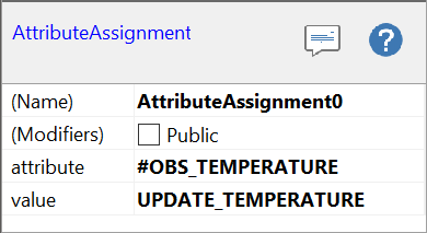 If you have used an AttributeOperator as above, you may be tempted to simplify things further by getting rid of the UPDATE_TEMPERATURE attribute. Instead of letting the application change the value of a global UPDATE_TEMPERATURE attribute to 23.0, say, you may think it would be simpler to let the application just modify the value property in the AttributeAssignment to be 23.0 explicitly (the value property is a general expression). But that would be a mistake, because the AttributeAssignment.Value property is not thread-safe: if the AttributeOperator is connected to a View, the value property should be modified only from the GUI thread while also holding the global configuration lock, which is inefficient. For details, see Threading Model, configuration.