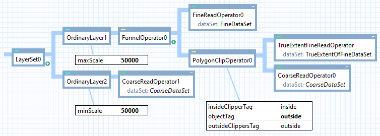 If FillArea is False, the LevelOfDetailOperator will retrieve data from at most one of its inputs, determined by the View scale or resolution. (The Criteria controls whether scale or resolution is used.)