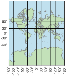 The latitude of the two standard parallels, at equal distance from the equator. A Miller projection is normally constructed with the equator as the only standard parallel, which means that its scale is true only at the equator: on latitude 60°, for example, the projection will enlarge an eastbound line segment by a factor 2.00, and a northbound one by a factor 1.49. But if you set StandardParallel to 60°, then the projection is compressed by a factor 2.00 in the west-east direction and a factor 1.49 in the north-south direction, which makes 60° N and 60° S into standard parallels, where the scale is true. The Miller projection is conformal on its standard parallels, but not elsewhere (unless compromise is 1).