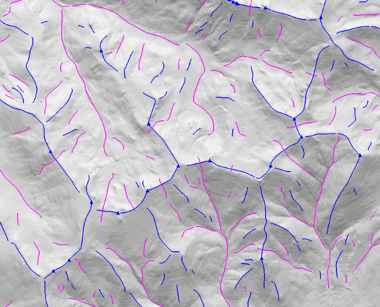 Generates lines representing ridges and valleys and points representing peaks and basins.