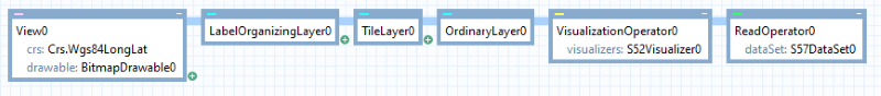 The visualizer works together with an S57DataSet reading S-57 data, to create a visualization that follows the standard as closely as possible. The visualizer has a lot of properties to control how the chart is rendered, and to turn certain features on or off, see the members of this class. You should normally not use any other visualizers, or try to filter the features from the dataset. A typical configuration looks something like this in Carmenta Studio: