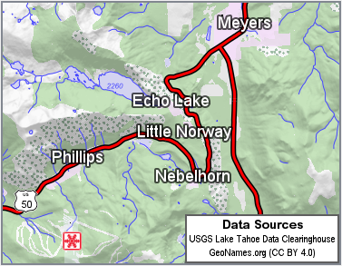 The screenshot shows a SimpleScreenElement used to display geodata credits. To get just the line breaks, we could have used a single text visualizer with newline characters in its text. But for this example, we also wanted a bolder font for the first line, so this screen element uses a PointVisualizerSet that refers to three text visualizers.