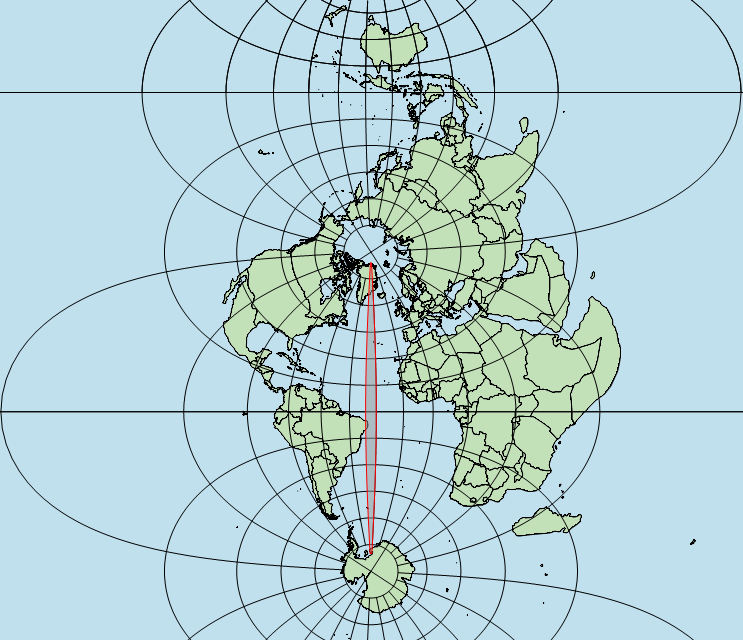 For storage in a DataSet, a UTM projection should normally not be used outside its zone, but there are national reference systems like SWEREF 99 TM that do so. Usually, the national surveyors take care to say that the national grid is not UTM, just a grid that happens to coincide with UTM in some parts of the country. Since Carmenta Engine uses projection formulas with wide accuracy (see TransverseMercatorProjection), it is possible to use a UTM projection world wide (at least within Carmenta Engine: exporting such data is not recommended). The following map uses the projection of UTM zone 25, with the actual zone shown in red. The map solves a classical problem for oceanographers: to show the Arctic Ocean as a small part of the Atlantic. (For an alternative, see the CassiniSoldnerProjection.)